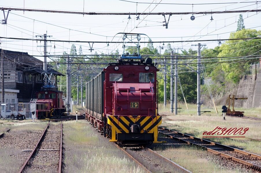 2020年05月20日 惜別 炭鉱電車⑤ ~三井化学専用鉄道~ ▲惜別 炭鉱電車⑤ ~三井化学専用鉄道~撮影地:三井化学専用鉄道 宮浦撮影日:2020.5.75両編成のタンクコンテナと連結完了宮浦ヤードにて最後の編成となる1便・・・宮浦駅舎前でパンタを上げてる11号がいますがもう出番はありませんこれから推進運転にてバックします・・・さようなら 19号(つづく) 「惜別 炭鉱電車 2020/5/7」カテゴリの最新記事