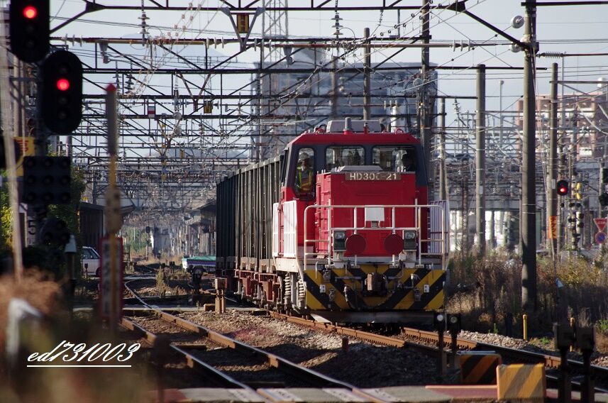 2019年11月15日 鹿児島本線上を行くHD300-21号機 大牟田貨物 ▲鹿児島本線上を行くHD300-21号機 大牟田貨物撮影地:鹿児島本線 大牟田駅付近撮影日:2019.11.5炭鉱電車撮影の合間に~HD300が牽引する大牟田貨物編成をちょっくら撮影短い編成ですが、本線上を行くHD300牽引の貨物はいいものだ(^o^)大牟田市街地を抜け、仮屋川操車場までの僅かの道のりですけどね炭鉱電車とのランデブーが毎日見られる~そんな楽しみもある大牟田は最高(つづく)